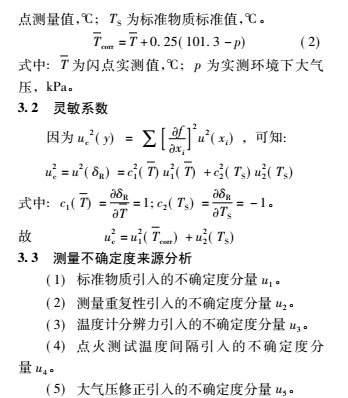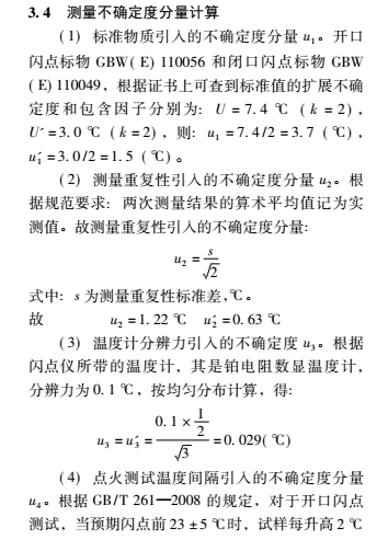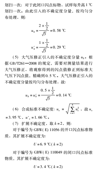 通過評定可得,開口 / 閉口閃點測定儀的不確定度主要來源于標準物質(zhì)、重復性測量及點火測溫間隔引入的不確定度,溫度計顯示和大氣壓修正引入的標準不確定度較小。