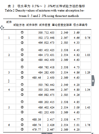 [ 1] 所提到的吸水率。因此 , 表干法的適用條件在實際工程中較難準確界定 , 實際操作的準確度也難于把握。